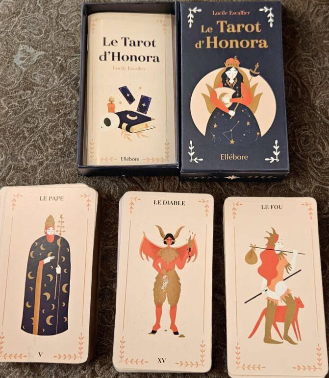À travers son livret, Honora vous révèle les secrets des 22 arcanes majeurs, revisités avec élégance dans des tons doux aux reflets cuivrés, afin de vous guider vers le voyage mystique que peut être votre chemin de vie.