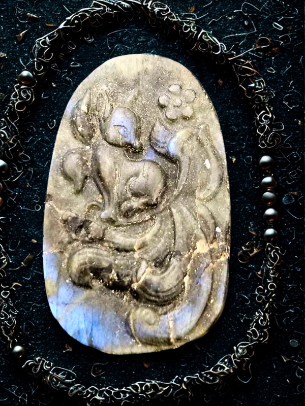 Labradorite (protège du négatif en l’absorbant, favorise l’acuité mentale, l’inspiration et l’intuition)