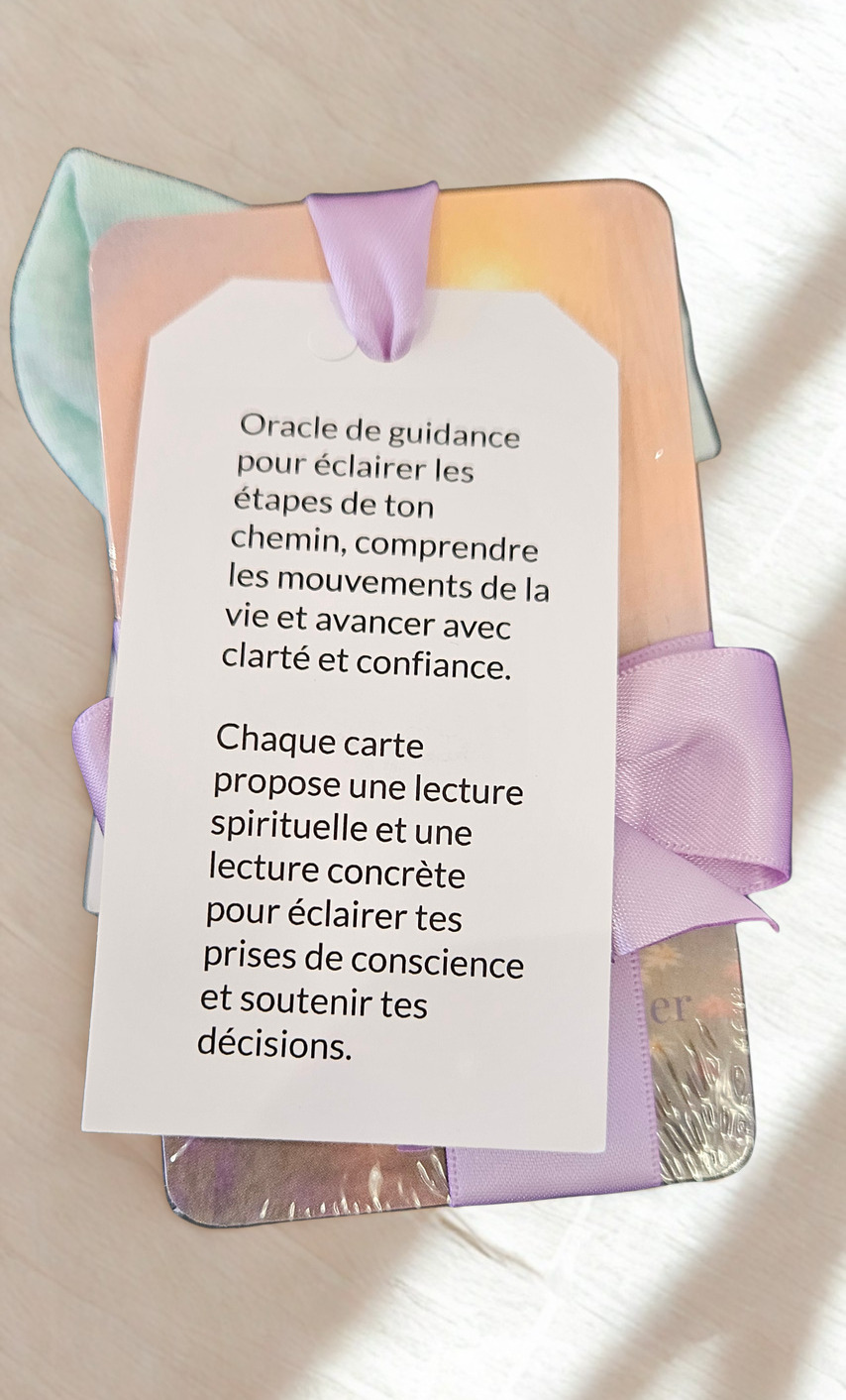 Chaque carte propose une lecture spirituelle et une lecture concrète pour éclairer tes prises de conscience et soutenir tes décisions. »