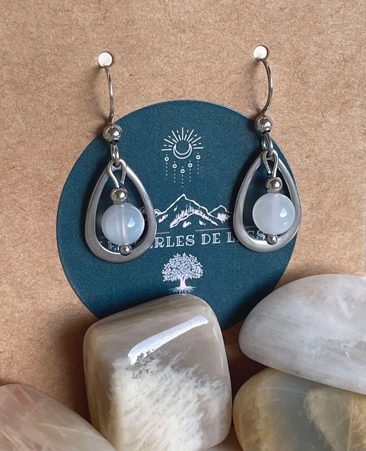 Pierre de Lune (apaisante et bénéfique au moi intérieur et aux émotions, apporte calme et maîtrise, équilibre, confiance et sérénité)